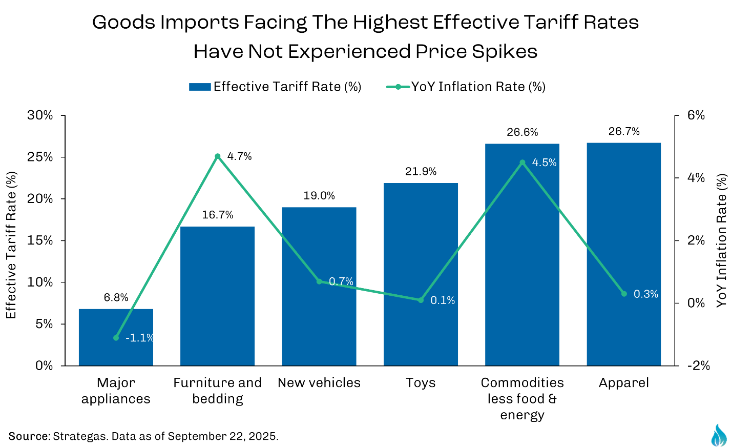 The One Big Beautiful Bill Act (OBBBA) has already funneled more than $100 billion into R&D and capital investment this year, eclipsing the $94 billion collected from tariffs since March. According to Strategas, this has effectively offset the drag from trade frictions arising from uncertain policy. For higher-income households, who already account for a disproportionate share of consumption, the tax and investment incentives embedded in the legislation are meaningful and should sustain spending.